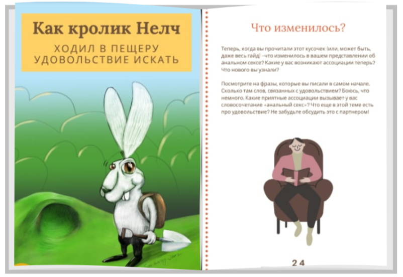тем эти практики изощренные." Что внутри (кхь): как всегда, прекрасные иллюстрации, термины, что считается анальным сексом, что нет, какие есть виды, а что делали древние Шумеры, а что на Руси, я вам даже заскринила, гляньте!! анал по Фрейду, стигма, откуда берется, медицинское устройство, инфекции и как уберечься, травмы, профилактика травм, как отличается анальное отверские тех, кто практикует анальный секс, и кто нет, беременность, и потом еще на 40 страниц, а как им заниматься-то с минимальным ущербом здоровью. Со ссылками на товары. И список литературы. Это чрезвычайно увлекательный гайд, который познакомит вас с частью тела, с которой вы, возможно, были знакомы только в темноте и наощупь, иф ю ноу)