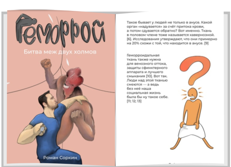 Это гайд от dr_sorkin по геморрою. Звучит возможно не очень празднично, но он прекрасно написан! И это крутой гайд) Во-первых, он супер тактично иллюстрирован, так тактично, что мы даже познакомились с иллюстратором. В гайде 100+ страниц, от истории до всех способов лечения. Узнала, что в Месопотамии геморрой прижигали горячей палкой))) Причины все оч аккуратно и подробно описаны, профилактика, позы для испражнений, правильная туалетная бумага (бумага ли), какой спорт помогает от геморроя, короче если вы заметили у себя ЧТО-ТО, то купите этот гайд - все станет проще и понятнее. Супер выгодное приобретение! И снимает много тревоги.